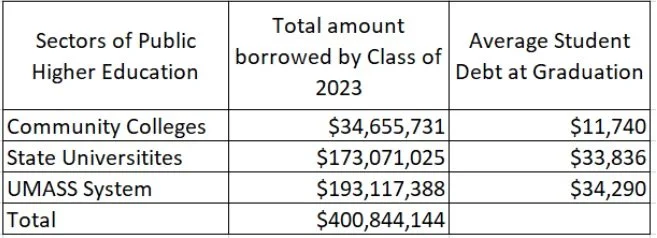 This spring, the graduating class of 2023 from our Massachusetts public institutions alone, which comprises both community college graduates and individuals receiving bachelor’s degrees from public higher education institutions, collectively carries a staggering debt of approximately $400 million.