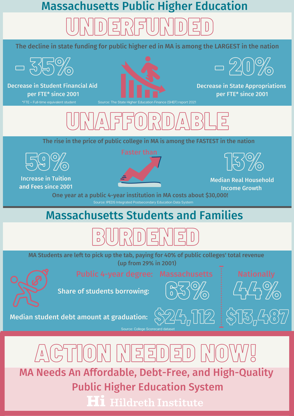 Education, particularly higher education, has long been viewed as the primary driver of economic and social mobility in the United States. However, in the last couple of decades, we witnessed severe funding cuts in Massachusetts.