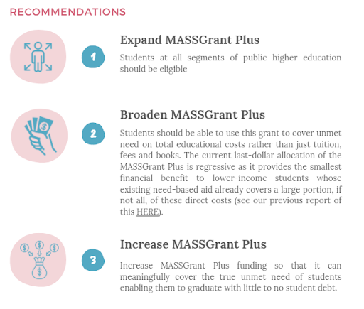 What has long been considered a critical step toward social and economic mobility in this nation is being held out of reach for Latino and Black and African-American families in Massachusetts, with many being forced to abandon the hope of a college degree for themselves and their children. High debt-burdened low-and-middle-income students who are able to graduate are at a significant disadvantage upon graduation – with hefty loan payments draining their resources, further exacerbating existing economic and racial disparities.